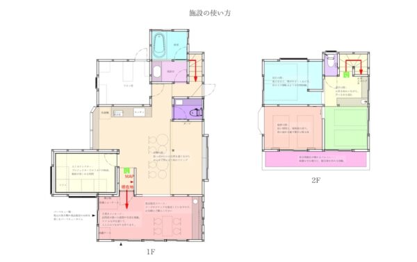 | アメニティ・設備 | 洗濯機(無料)、シャンプー、歯ブラシ、タオル、洗濯用品、冷蔵庫、電子レンジ、IH卓上コンロ、エアコン、Wi-Fi、バーベキューセット(有料)、プロジェクター、ダーツ |